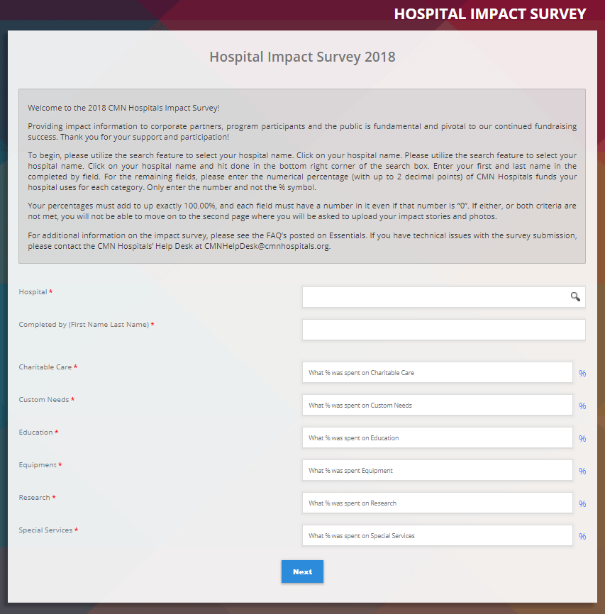 The link will take you to a landing page where you will first input your percentages. Below is a screen grab of the first section of the impact survey.